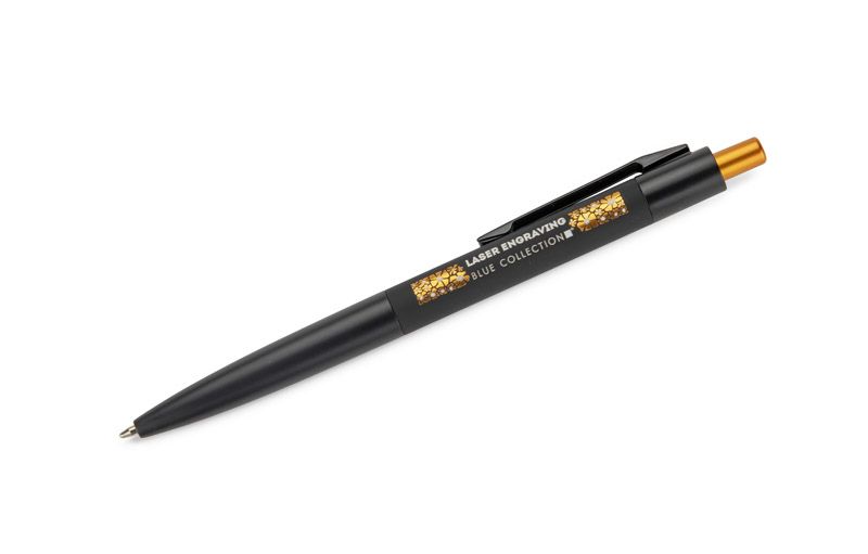 Długopis PAUL to elegancki model o klasycznej formie i lakierowanym wykończeniu. Czarny korpus uzupełnia kolorowy przycisk oraz efektowne, lustrzane logo, które staje się widoczne po wykonaniu graweru. Mechanizm automatyczny ułatwia codzienne użytkowanie, a wkład typu X20 z tuszem o grubości pisania 0,7 mm zapewnia płynny, równy zapis. Połączenie połysku i kontrastowych detali nadaje długopisowi nowoczesny charakter, idealny do znakowania reklamowego.