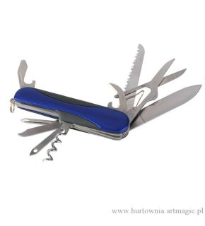 Multinarzędzie 16w1, posiada funkcje takie jak: 7 różnych kluczy, 3 śrubokręty, otwieracze do butelek itp.
