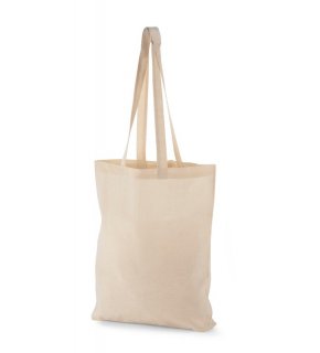 Torba z długimi uszami, wykonana z bawełny organicznej Fair Trade, o gramaturze 180 g/m², z szerokim dnem.