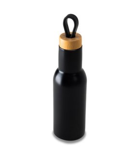 Butelka wykonana ze szkła. Posiada bambusową nakrętkę ze sznurkiem. Pojemność 500ml.
