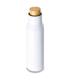 Szczelna butelka próżniowa z powierzchnią imitującą drewno. Wykonana ze stali nierdzewnej.