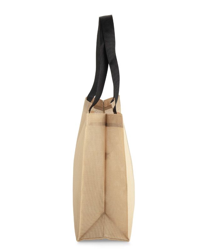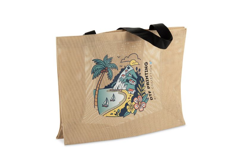 Torba plażowa BAZA została wykonana z przewiewnego, dziurkowanego materiału, który idealnie sprawdza się w letnich warunkach. Poszerzane dno i boki zwiększają pojemność, dzięki czemu torba pomieści ręcznik, kosmetyki i inne niezbędne akcesoria. Posiada parciane uchwyty zapewniające wygodne noszenie oraz wewnętrzną, otwartą kieszonkę na drobiazgi. Na zewnątrz umieszczono naszywkę stanowiącą miejsce do znakowania. Lekka, funkcjonalna i praktyczna – doskonała na plażę, basen lub letnie zakupy.