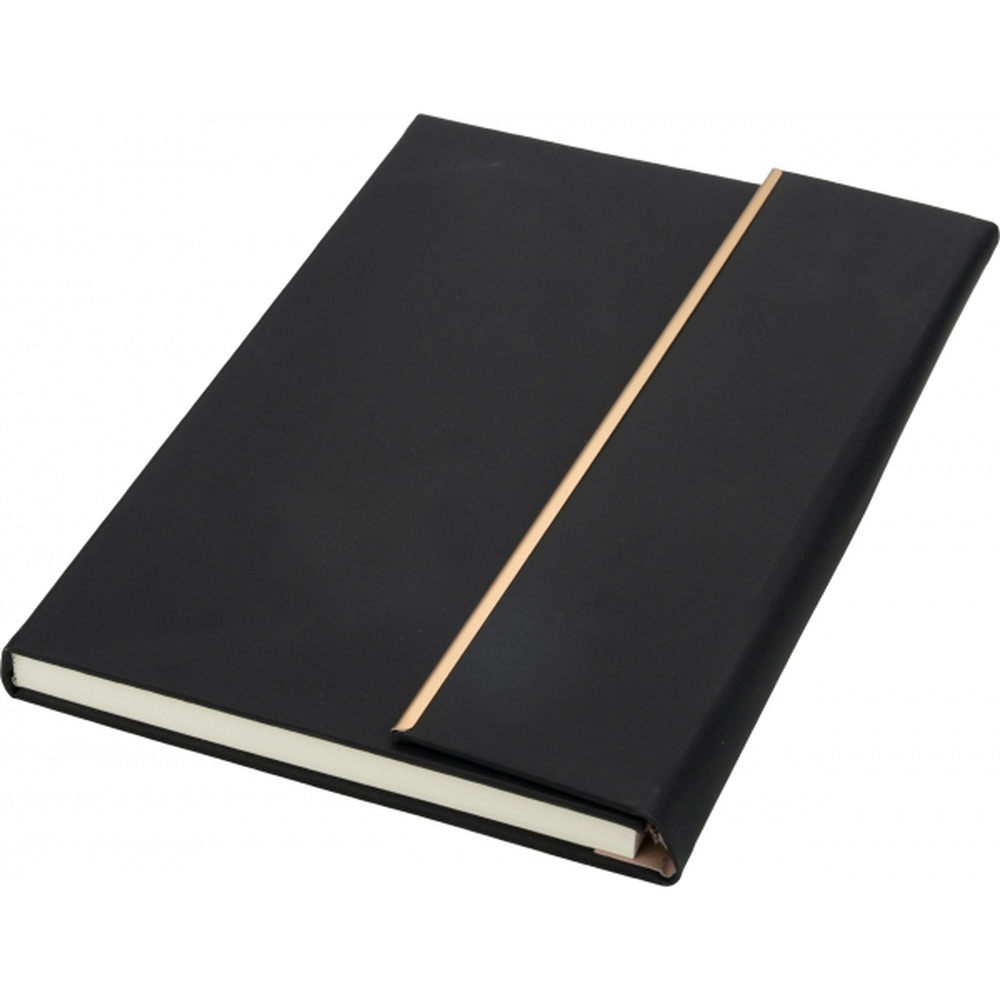 Zestaw, składający się z notesu z 96 kartkami w linie, w oprawie ze skóry pochodzącej z recyklingu i dopasowanego kolorystycznie długopisu.