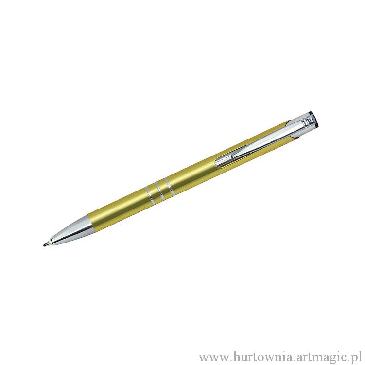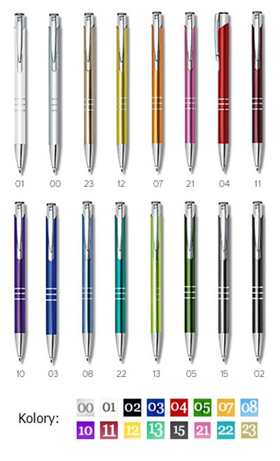 Najbardziej popularny metalowy długopis w Polsce, teraz w trzech paskach. Posiada gruby wkład w kolorze niebieskim. Państwa logo umieścimy na korpusie metodą graweru laserowego.