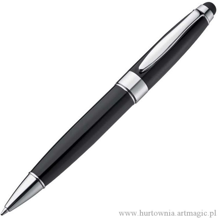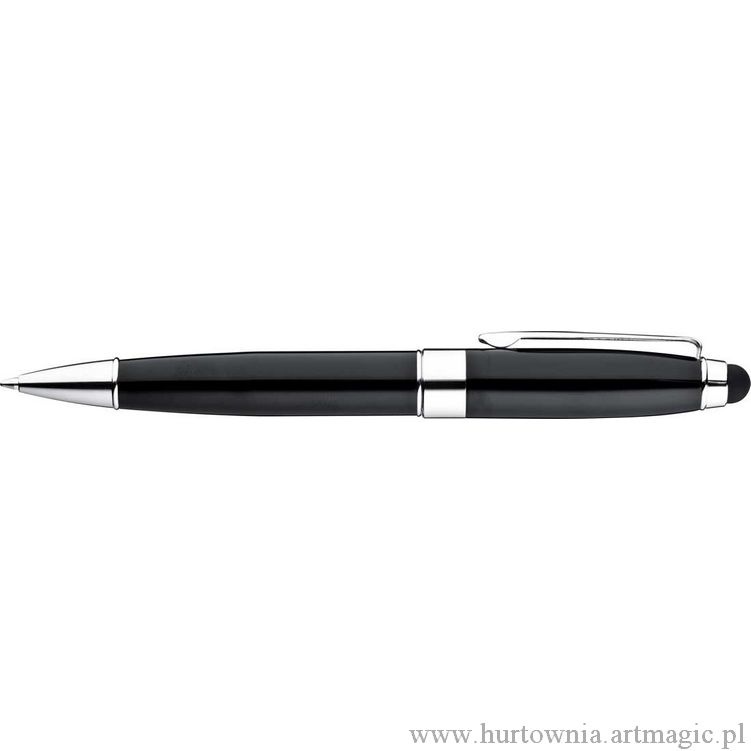 Długopis metalowy z mechanizmem obrotowym o klasycznym wzornictwie. Posiada duży, niebieski wkład oraz specjalną gumkę, ułatwiającą korzystanie ze smartfonów i touch pad'ów.