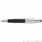 Klasyczny zestaw piśmienny, w którego skład wchodzą długopis i pióro kulkowe w eleganckim, czarnym etui.
