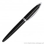 Bardzo elegancki zestaw składający się z metalowego długopisu i pióra kulkowego. Pakowany w etui. Wyposażone w niebieskie wkłady.
