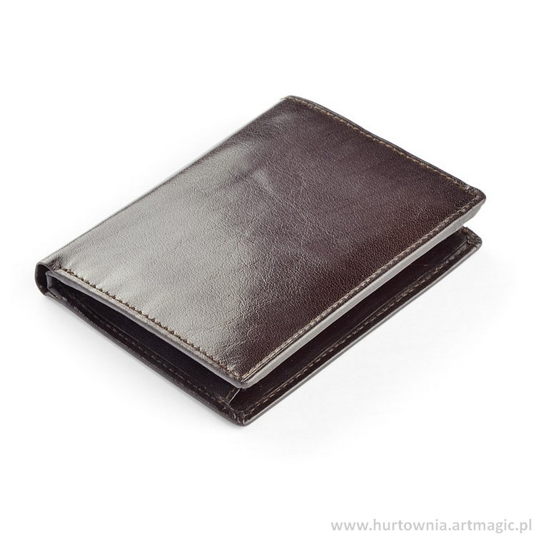 Portfel wyposażony w miejsce na bilon, 2 kieszenie na banknoty, 4 miejsca na karty kredytowe, 5 kieszeni na dokumenty, kieszeń zapinaną na suwak. Portfel pakowany w drewniane pudełko. Dodatkowo portfel wyposażony jest w folię zabezpieczającą przed kradzieżą danych z kart kredytowych, blokując sygnał RFID. Logo wykonamy metodą tłoczenia lub grawerowania.