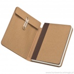 Notes w tekturowej okładce z gumką i 120 stronami w linie. Posiada również kieszonką na notatki zamykaną na gumkę. Nadruk proponujemy umieścić na okładce.