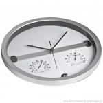 Stylowy zegar ścienny CrisMa z termometrem i higrometrem. Połowa tarczy może być łatwo wyjęta z obudowy i w całości zadrukowana.