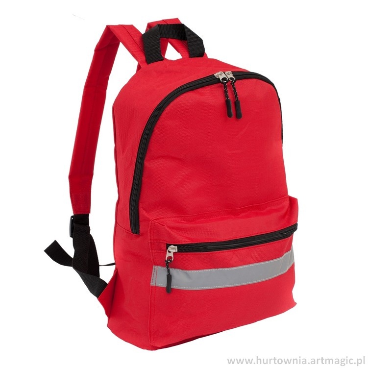 Plecak dziecięco/młodzieżowy wykonany z poliestru 600D z taśmą o szerokości 2,5 cm zwiększającą widoczność. Nie należy utożsamiać tego produktu z produktami ochrony indywidualnej w rozumieniu Dyrektywy o Środkach Ochrony indywidualnej 89/686/EEC