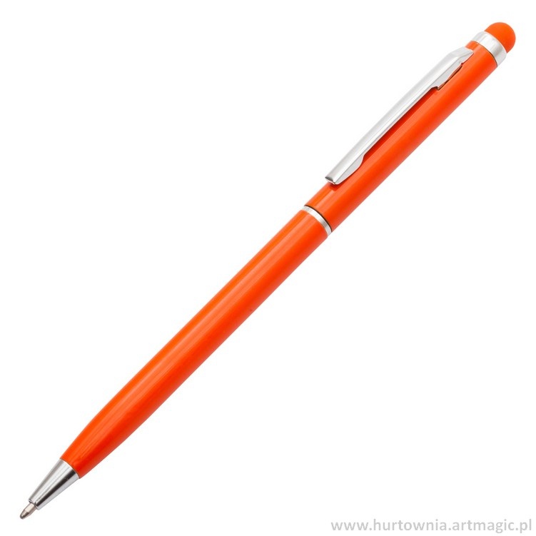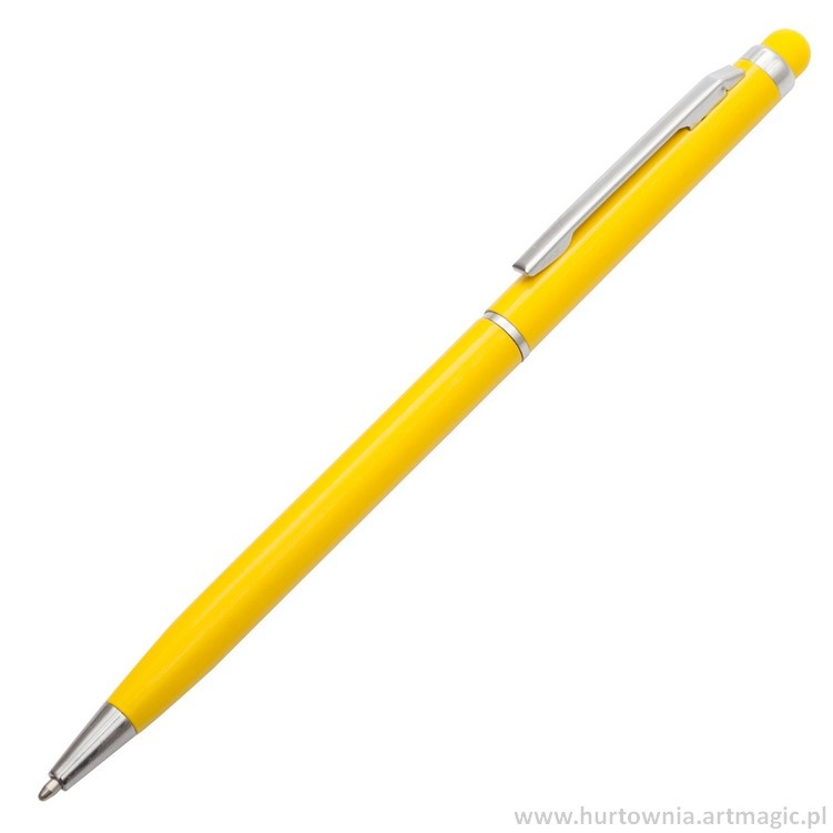 Długopis z końcówką przystosowaną do ekranów dotykowych. Wykonany z aluminium. Wyposażony w niebieski wkład. Grawer w jednym miejscu wliczony w cenę.