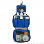 Nadzwyczaj praktyczna, trwała i pojemna kosmetyczka zamykana na zamek. Wyposażona w haczyk, dwie kieszonki z siatki zamykane na zamek i cztery otwarte, głębokie przegródki.