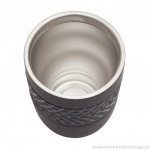 Szczelny kubek izotermiczny o pojemności 200 ml z ergonomiczną opaską ułatwiającą trzymanie kubka. Umieszczona na spodzie przyssawka zapobiega przypadkowemu przewróceniu się kubka. Dwie ścianki ze stali nierdzewnej, wewnątrz stal 18/8 o podwyższonej jakości.