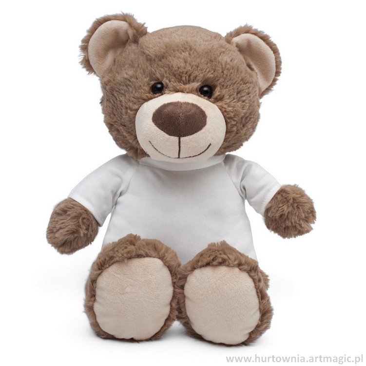 Duża pluszowa maskotka w kształcie misia w koszulce.