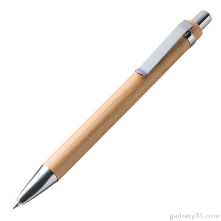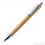 Zestaw piśmienny wykonany z drzewa bambusowego. Zestaw składa się z długopisu piszącego na niebiesko oraz ołówka. Pakowane w kartonowe pudełko.