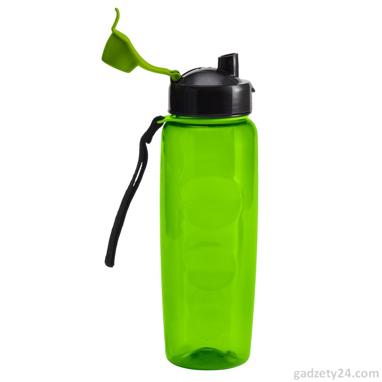 Wygodny bidon o pojemności 700 ml z uchwytem na nadgarstek oraz oryginalnym zamknięciem.
