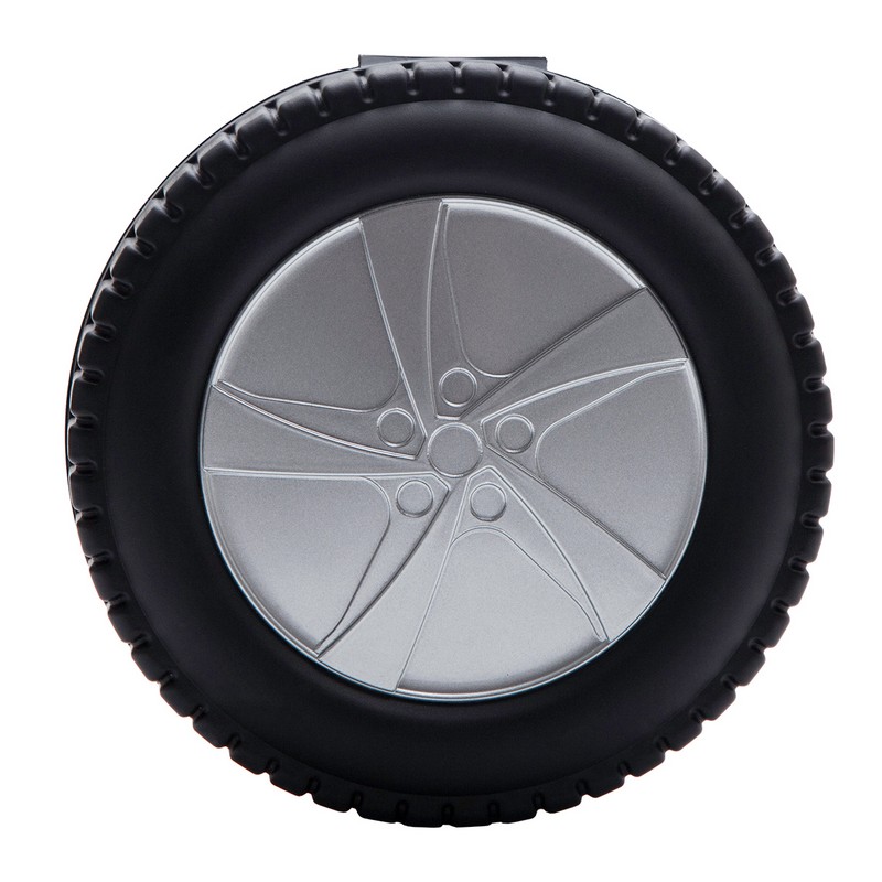 Zestaw 24 narzędzi w opakowaniu w kształcie opony samochodowej. Składa się z rączki, przedłużki, miarki, 2 śrubokrętów, 3 kluczy imbusowych, 5 kluczy nasadowych i 10 wkrętaków.