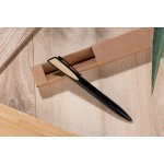 OYA to elegancki długopis wykonany z metalu oraz tworzywa w czarnym kolorze z ciekawym elementem ozdobnym z naturalnego bambusa. Długopis zapakowany jest w papierowy kartonik w kolorze brązowym. Mechanizm typu twist, wkład w kolorze niebieskim.