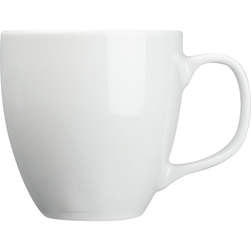 Kubek wykonany z białej porcelany, o pojemności 400 ml.