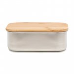 Stalowy pojemnik na lunch z pokrywką z bambusa, którą można wykorzystać jako tackę. Idealny na piknik, do biura, kemping. Pojemność 800ml.