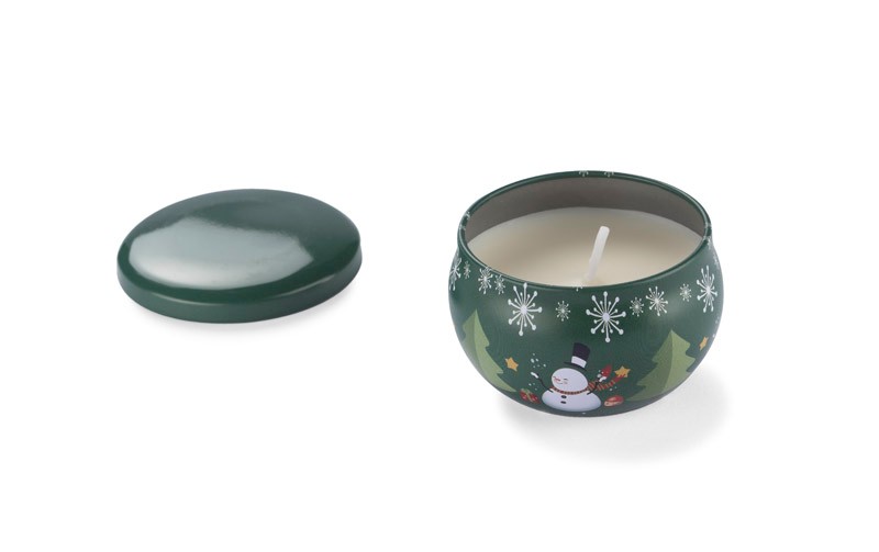 Świeca KERI z naturalnym woskiem sojowym o zapachu delikatnego rumianku. Świeca w oryginalnej zamykanej puszce z nadrukiem świątecznym.