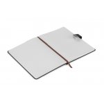 Notes IDELO w eleganckiej, klasyczniej okładce wykonanej z ekoskóry. Zawiera 80 kartek w kropki oraz praktyczną wstążeczkę pełniącą funkcję zakładki. Kartki w notesie zostały wykonane z papieru z certyfikatem FSC. Format B5. Zapakowany w kraftowe pudełko.