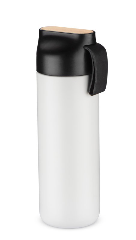 Butelka termiczna ELSA wykonana jest ze stali nierdzewnej o podwyższonym standardzie. Posiada próżnię między ściankami, dzięki czemu utrzymuje temperaturę napoju około 10 godzin. Zakrętka z tworzywa posiada ozdobny element z naturalnego bambusa i silikonowy uchwyt.