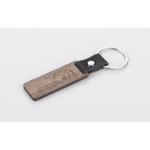 Brelok HASEL to elegancki brelok wykonany z drewna orzechowego. Metalowa obręcz zawieszona jest na skórzanym pasku.