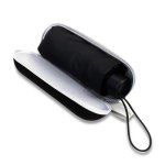 Składany parasol, ręcznie otwierany i zamykany. Rama i pałąk wykonane z metalu, żebra z włókna szklanego. Rączka wyposażona w opaskę i uchwyt. Pakowany w usztywniane etui. Lekki i kompaktowy.