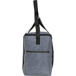 Ekologiczna torba termiczna wykonana z filcu pochodzącego z recyklingu to idealny wybór dla osób dbających o środowisko. Wyposażona w dużą komorę główną oraz zewnętrzne kieszenie, zapewnia odpowiednią przestrzeń na różnorodne produkty. Dwie boczne kieszenie świetnie nadają się na napoje, a płaska przednia kieszeń sprawdzi się na drobne przedmioty. Dzięki obszernemu dnu, torba pomieści szersze pojemniki, takie jak lunchboxy. Wnętrze torby zostało wyłożone powłoką termiczną, która utrzymuje odpowiednią temperaturę przechowywanych produktów. Krótkie uchwyty oraz regulowany pasek na ramię zapewniają wygodę noszenia, czyniąc torbę praktycznym i stylowym rozwiązaniem na co dzień.
