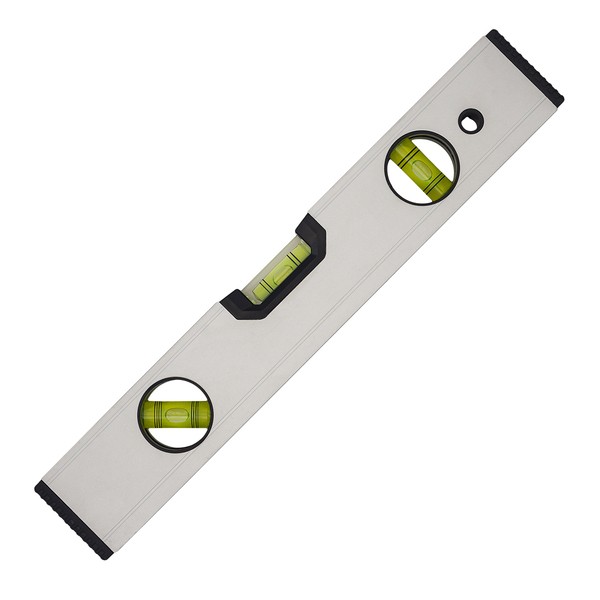 Aluminiowa poziomica o długości 30 cm wyposażona w magnetyczną podstawę oraz 3 libelle pomiarowe: 0˚, 90˚ i 45˚.