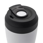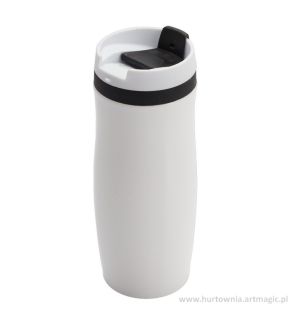 Szczelny kubek próżniowy z praktyczną pokrywką. Za pomocą przycisku, zamknięcie odskakuje na bok umożliwiając swobodne picie z kubka. Dwie ścianki ze stali nierdzewnej 18/8 o podwyższonej jakości. Próżnia pomiędzy ściankami zapewnia bardzo dobre właściwości termoizolacyjne. Utrzymuje temperaturę powyżej 40°C do 8 godzin.