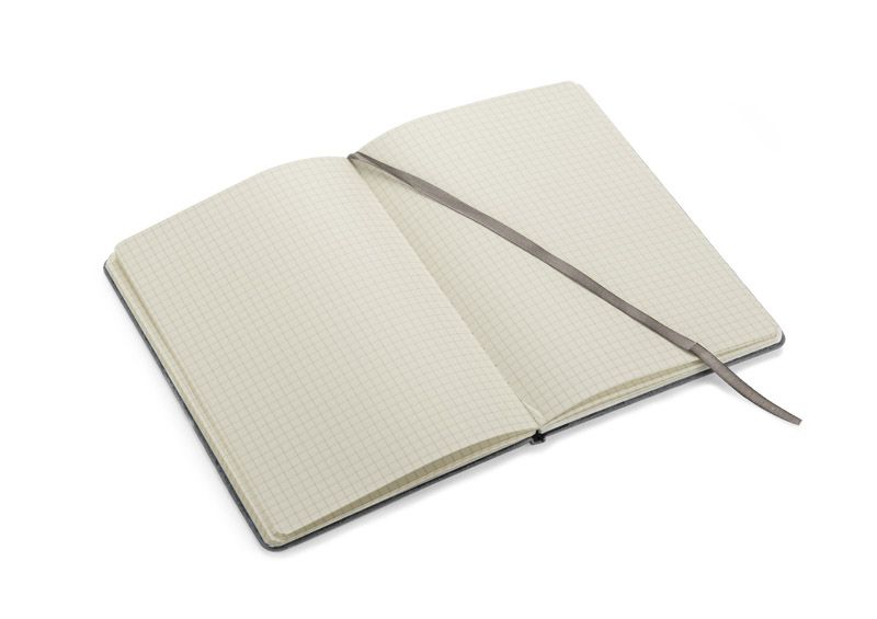 Notes CANTRA A5 to elegancki notes w twardej oprawie z welwetowego materiału skóropodobnego. W środku znajduje się biały papier w kratkę (gramatura 70 g/m²) oraz praktyczna tasiemka pełniąca funkcję zakładki. Idealny do codziennych notatek w stylu premium.