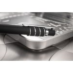 SPINO wyróżnia się połączeniem klasycznego długopisu z popularnym spinnerem antystresowym, umieszczonym tuż pod klipsem. Obudowa pokryta miękkim w dotyku wykończeniem soft touch zapewnia komfort pisania. Spinner z ozdobnymi, srebrnymi elementami nie tylko przyciąga wzrok, ale też pozwala rozładować napięcie podczas pracy lub spotkań. To funkcjonalny gadżet piśmienniczy z elementem zabawy, który doskonale sprawdzi się jako oryginalny nośnik reklamy.