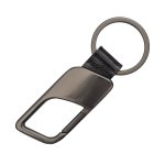 Brelok wykonany z matowego metalu w kolorze grafitowym i ekoskóry. Pakowany w czarne opakowanie upominkowe.