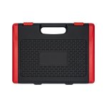 Praktyczny zestaw narzędzi umieszczony w poręcznej walizce. Zawartość zestawu: nóż uniwersalny, 8 szt. kluczy imbusowych, 10 końcówek wkrętakowych, 2 szt. wkrętaków, uchwyt do bitów, taśma izolacyjna do wiązek przewodów, nożyczki techniczne, próbnik napięcia, klucz nastawny 6”, młotek, szczypce wydłużone 6”, taśma samoprzylepna 3M, 2 szt. precyzyjnych wkrętaków, 80 szt. elementów złącznych (np: gwoździe, śruby, nakrętki, kołki itp.), walizka narzędziowa.
