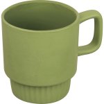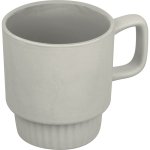 Ceramiczny kubek o pojemności 300 ml, ze zwężaną, ryflowaną dolną częścią. Matowe wykończenie zapewnia przyjemny chwyt. Kubek pakowany w kartonik.