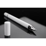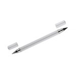 Długopis TWINO 2 w 1 łączy w jednym korpusie klasyczny długopis i wieczny ołówek, tworząc praktyczne narzędzie do codziennego użytku. Z jednej strony znajduje się długopis z zatyczką i wkładem o grubości pisania 1,0 mm, z drugiej – ołówek wieczny, który nie wymaga ostrzenia. Korpus wykonany jest z tworzywa o satynowym wykończeniu i ozdobiony srebrnymi pierścieniami podkreślającymi jego dopracowany wygląd. TWINO jest lekki, poręczny i wygodny, idealny do biura, szkoły lub jako funkcjonalny gadżet reklamowy.