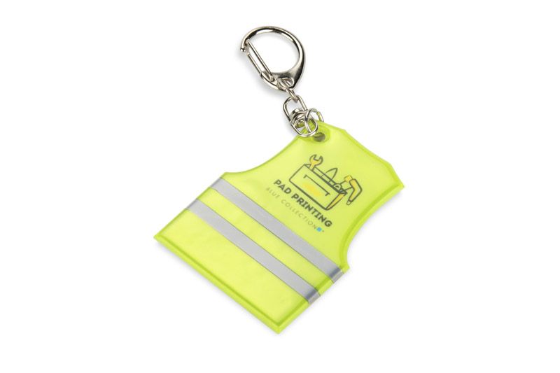 Brelok REFLO w kształcie kamizelki to praktyczny i wyrazisty gadżet reklamowy. Wykonany z materiału z elementami odbijającymi światło. Umieszczony na metalowym kółku z dodatkowym karabińczykiem obrotowym, pozwala łatwo przypiąć go do kluczy, torby czy plecaka. Dzięki możliwości znakowania brelok staje się nośnikiem reklamy o charakterze użytkowym, który sprawdzi się w kampaniach związanych z bezpieczeństwem.