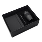 Zestaw upominkowy zawierający notes A5, 80-kartkowy w kratkę 4mm (papier 70 g/m²) w twardej oprawie PU, metalowy długopis, w dopasowanym wykończeniu (wkład w kolorze niebieskim) oraz próżniowy kubek z podwójnymi ściankami ze stali nierdzewnej 18/8 wewnątrz i silikonową opaską. Pojemność 300 ml. Utrzymuje temperaturę powyżej 40°C do 5 godzin.